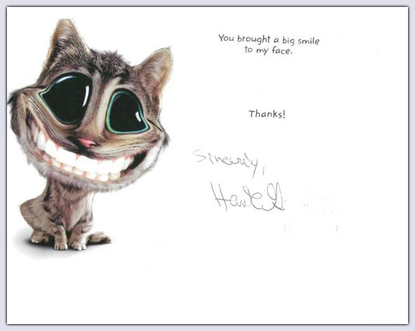 Client M.C. sent Harold L. Wallin this thank you after he got her statutory summary suspension rescinded.